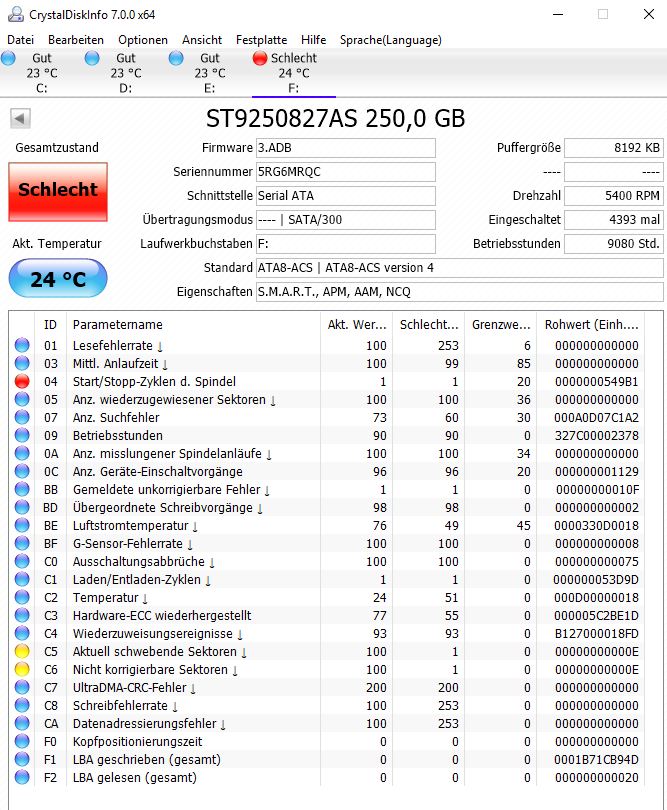 Du solltest die 250 GB Seagate schnellstmöglich ausmustern.S-Bock schrieb:So ich bin dazu gekommen ein paar Screenshots zu machen.