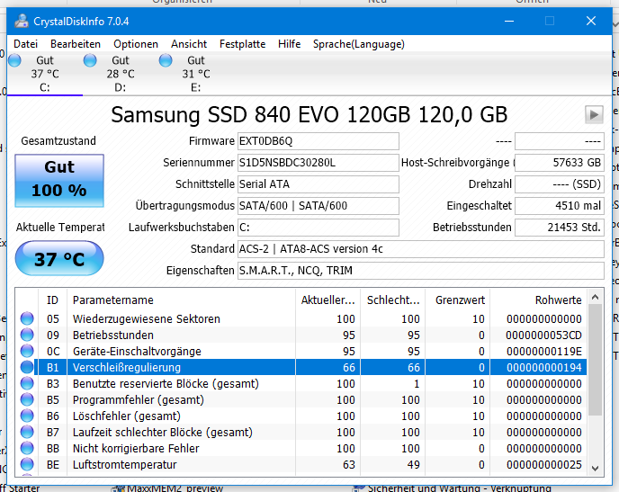 meine 840 Evo ist mitllerweile auf 66% runter. sollte ich mir langsam gedanken machen und was neues holen?