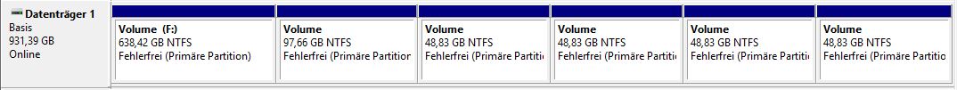 - Bei einem Datenlaufwerk ohne Systempartition und ohne MBR lassen sich über die Datenträgerverwaltung beliebig viele primäre Partitionen erzeugen: