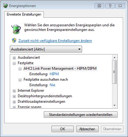 Hier ein Link zu einer Anleitung wie man LPM bei Windows auch im Ausgewogenen Energiesparplan einstellbar machen kann, einfach auf Active stellen, dann bleibt der SATA Link aktiv und LPM ist deaktiviert. Es spart bei SSDs nur einige Hundert mW und kostet auch Performance, einige SSDs brauchen bis zu 3ms um zu reagieren wenn die SATA Lane vorher deaktiviert war (also LPM aktiv ist) und bei manchen gibt es damit auch Probleme wie Freezes des Systems.Max H schrieb:Der Begriff "Link Power Management" war mir in keiner Anleitung bisher aufgefallen.