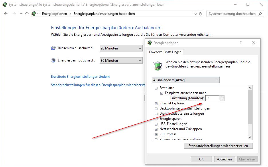 Wenn man den Zeit-Wert auf Null setzt, hat das zur Folge, dass das Laufwerk nie ausschaltet.Holt schrieb:Keine Ahnung ob 0 nun Nie bedeutet, wenn nicht würde ich es nicht auf 0 setzen. Bei SSDs bringt deren Ruhezustand sowieso keine nennenswerte Ersparnis und wenn die SSD auch das Systemlaufwerk ist, wären selbst 3min so viel, dass sie nie in den Standby geschickt würde, weil wohl keine 3 min ohne einen Zugriff aus das Systemlaufwerk vergehen werden. Lass dies bei SSDs aus und für die HDDs wäre es besser den Wert auch nicht zu hoch zu setzen.Max H schrieb:Wenn ich hier den Zeit-Wert nicht Null setze