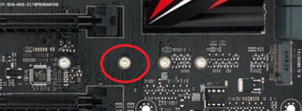 Es gibt dort mehrere solcher Schraublöcher in Reihe auf dem Mainboard: