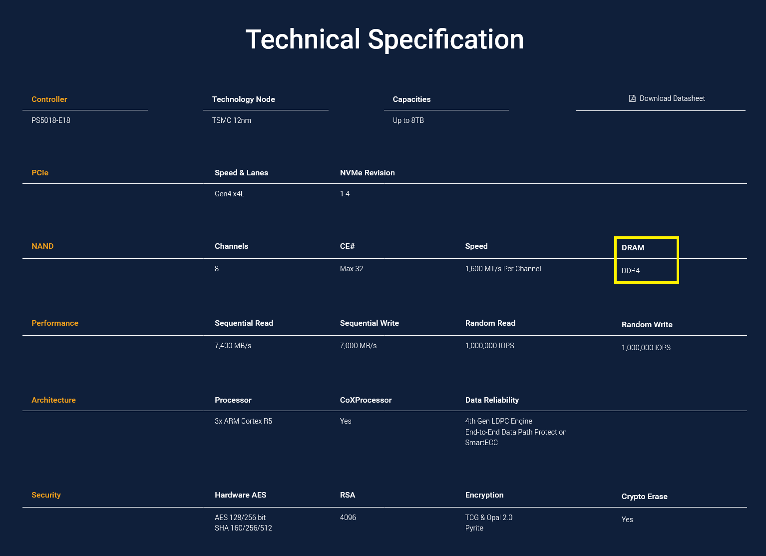Der Controller unterstützt einen DDR4 Cache;