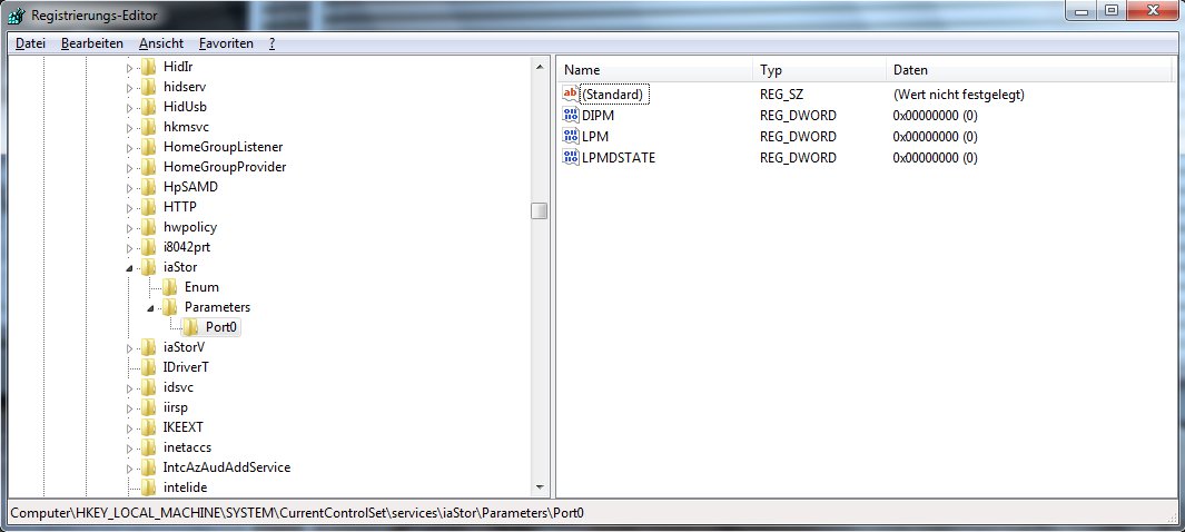 1) Geh zum Schlüssel HKEY_LOCAL_MACHINE\SYSTEM\CurrentControlSet\services\iaStor\Parameters