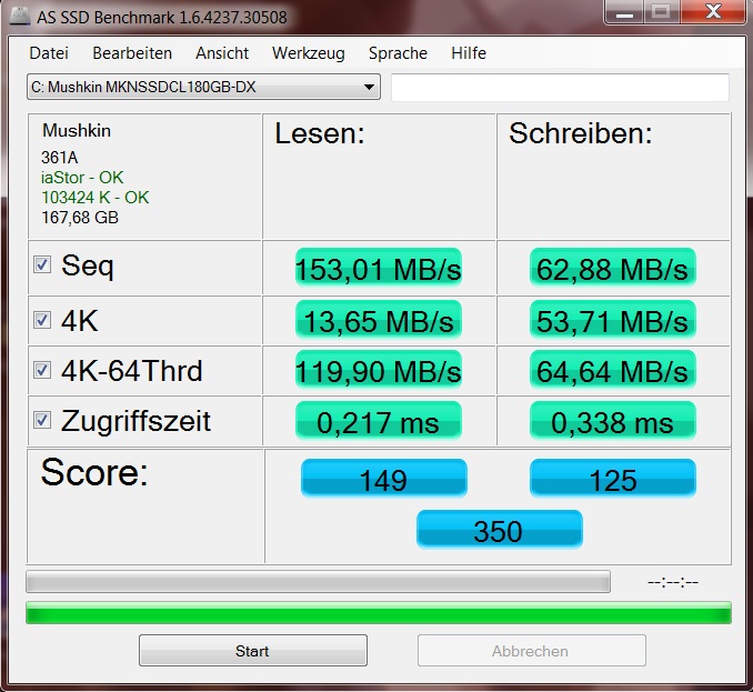 Außerdem sind die SF-22xx SSDs mit asynchronem Speicher (Force3/Agility3) real kaum schneller als ältere SATA2 SSDs. Also sind die Werksangaben in diesem Fall sogar Verarsche³.