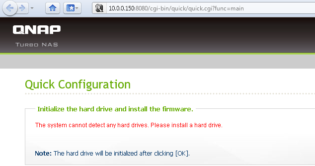 Ich habe gerade mal testweise meine Solidata K5 in mein QNAP 119+ eingebaut. Das NAS partitioniert zwar die SSD (Bild 1), es lässt sich aber keine Firmware hochladen (Bild 2).