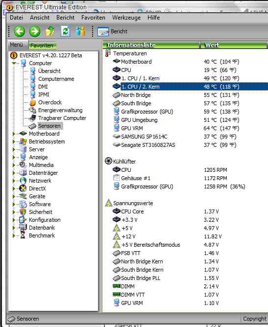 ich hab zuerst gedacht, dass mein netzteil kaputt ist, aber nun glaube ich, dass es an der grafikkarte liegt. Was meint ihr? Mein Pc (msi k8tneo fis2r, amd64 3200 + newcastle, 2x512 MB ddr 400 infineon, 120gb seagate, dvd brenner) startet nicht mehr, wenn ich die neue powercolor x 1950 pro eingebaut habe. Mit meiner alten geforce fx 5900 xt hat es aber keine probleme. Meint ihr die neue Grafikkarte ist defekt oder liegt es an dem Netzteil (seasonic s12II 380W, 12V1: 17A, 12V2: 17A)? Powercolor empfiehlt ein 450W NT mit 30A auf der 12 V Schiene, so ein Netzteil wäre bei meinem PC aber überdimensioniert oder?