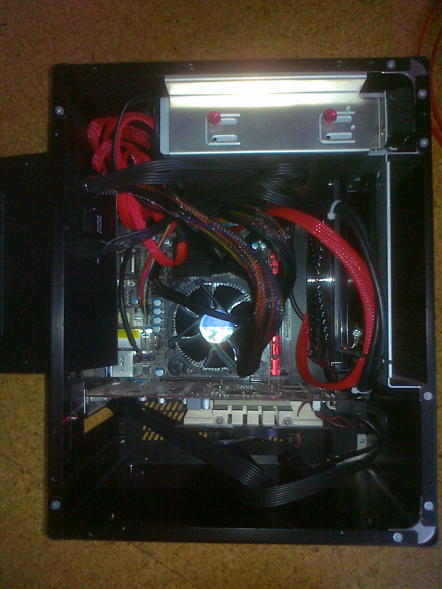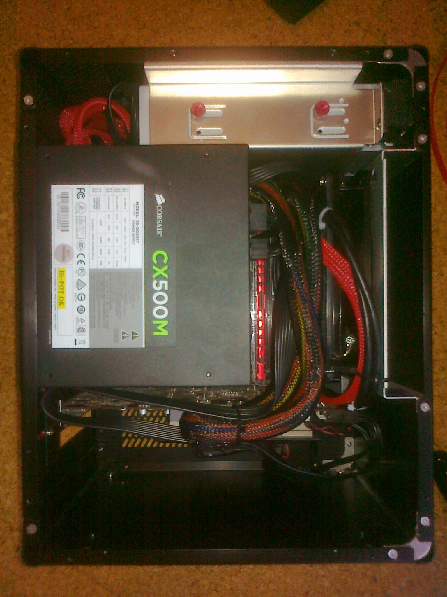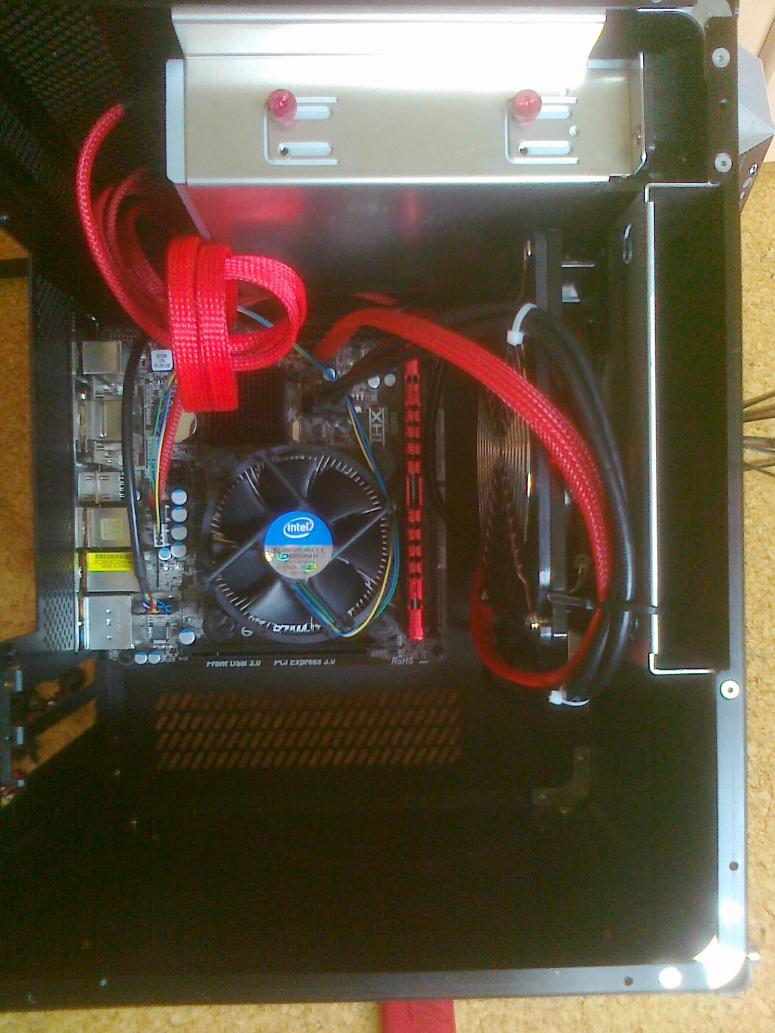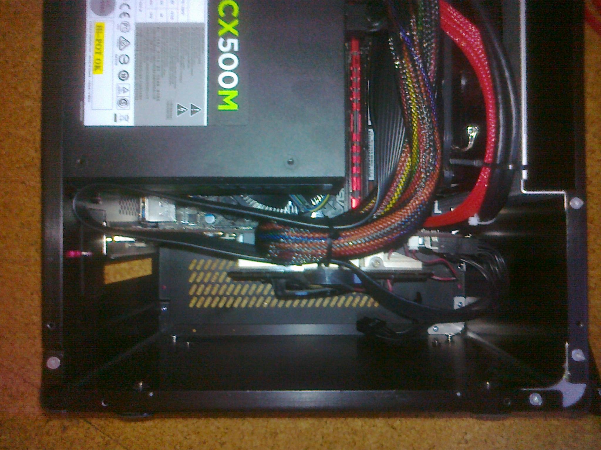 Die Festplatten habe ich, wie jemand anders hier (ich glaube Shaav wars), oben auf das Laufwerk geklebt. So habe ich unter der Graka mehr Platz und die damit mehr Luft zum Atmen. Evtl. werde ich auch noch zwei 92er-Lüfter mit Styropor in die Seite zwischen Boden und NT montieren, um der Graka noch mehr Frischluft zu geben, da sie momentan recht schnell bei Gaming wie CS:Go u.ä. 80°C erreicht und damit laut wird.
