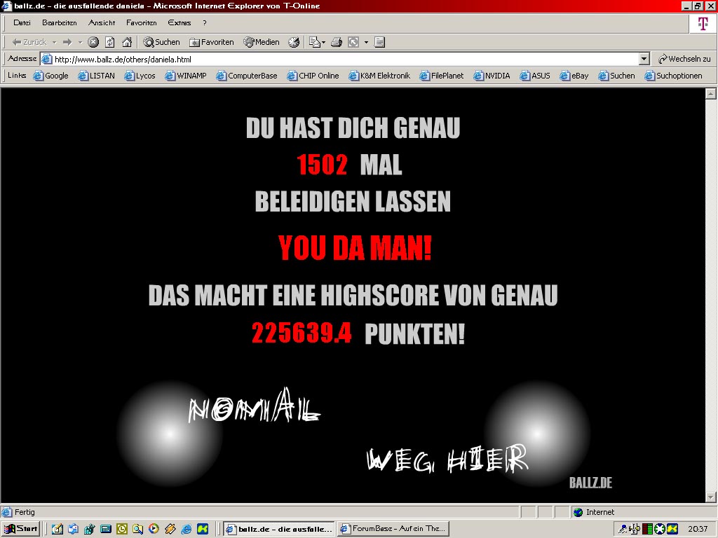 RESPEKT... mir war das nach 39 Beleidigungen zu doof... :-)