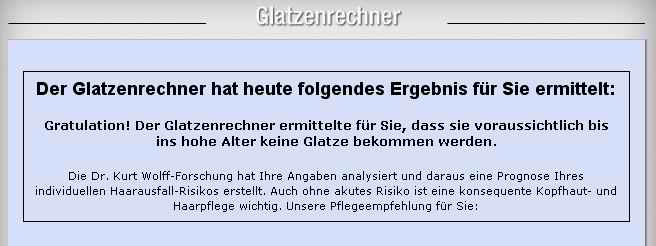 Der Glatzenrechner hat heute folgendes Ergebnis für Sie ermittelt: