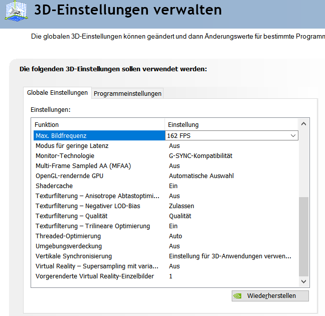Wobei bei manchen Spielen die Bewegbildgeschmeidigkeit schlechter wird mit V-Sync alleine. Bei diesen Spielen wird es besser, wenn man den Limiter auf den gleichen Wert setzt oder knapp darunter. Beispiel: