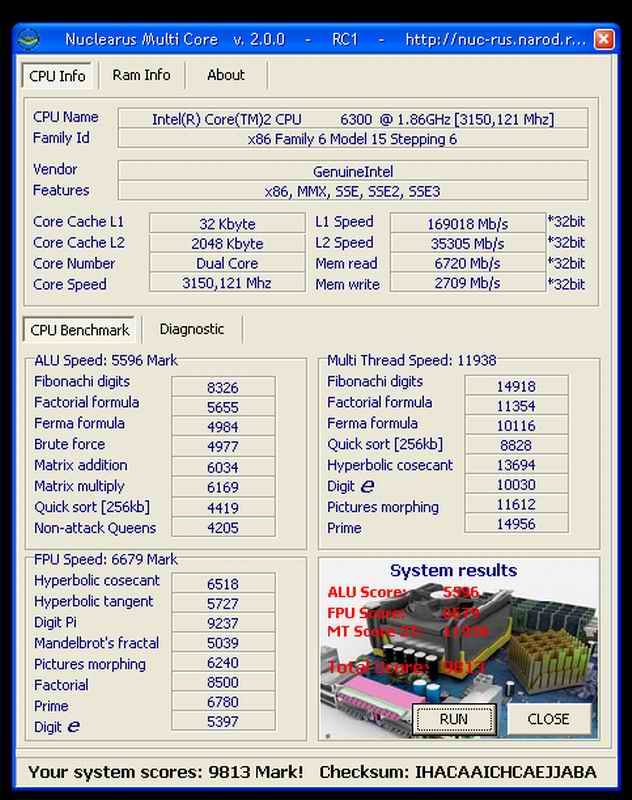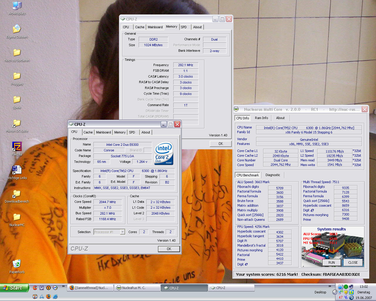 6216 / _.~°Runner°~._ /Core2Duo E6300 1,86GHz @ 2,04GHz / 1,264V / 292 / 1GB TeamGroup Value 667 @ 292Mhz (DDR584) @ 3-3-3-9-1T / LuKü (Freezer 7 Pro)