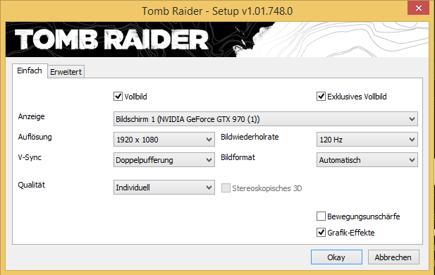 Du wolltest wissen wo die Konvergenz Einstellung bei Tomb Raider 2013 ist?? Also im menü ist es eigentlich da bei den 3D einstellungen, schau nochmal, falls du dann immernoch ein Bild brauchst schick ich dir en screenshot