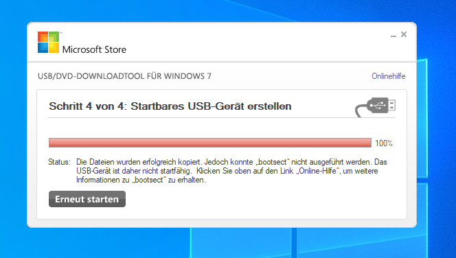 Es klappt leider nicht. Mit dem USB DVD-Downloadtool für Windows 7 bekomme ich eine Fehlermeldung: