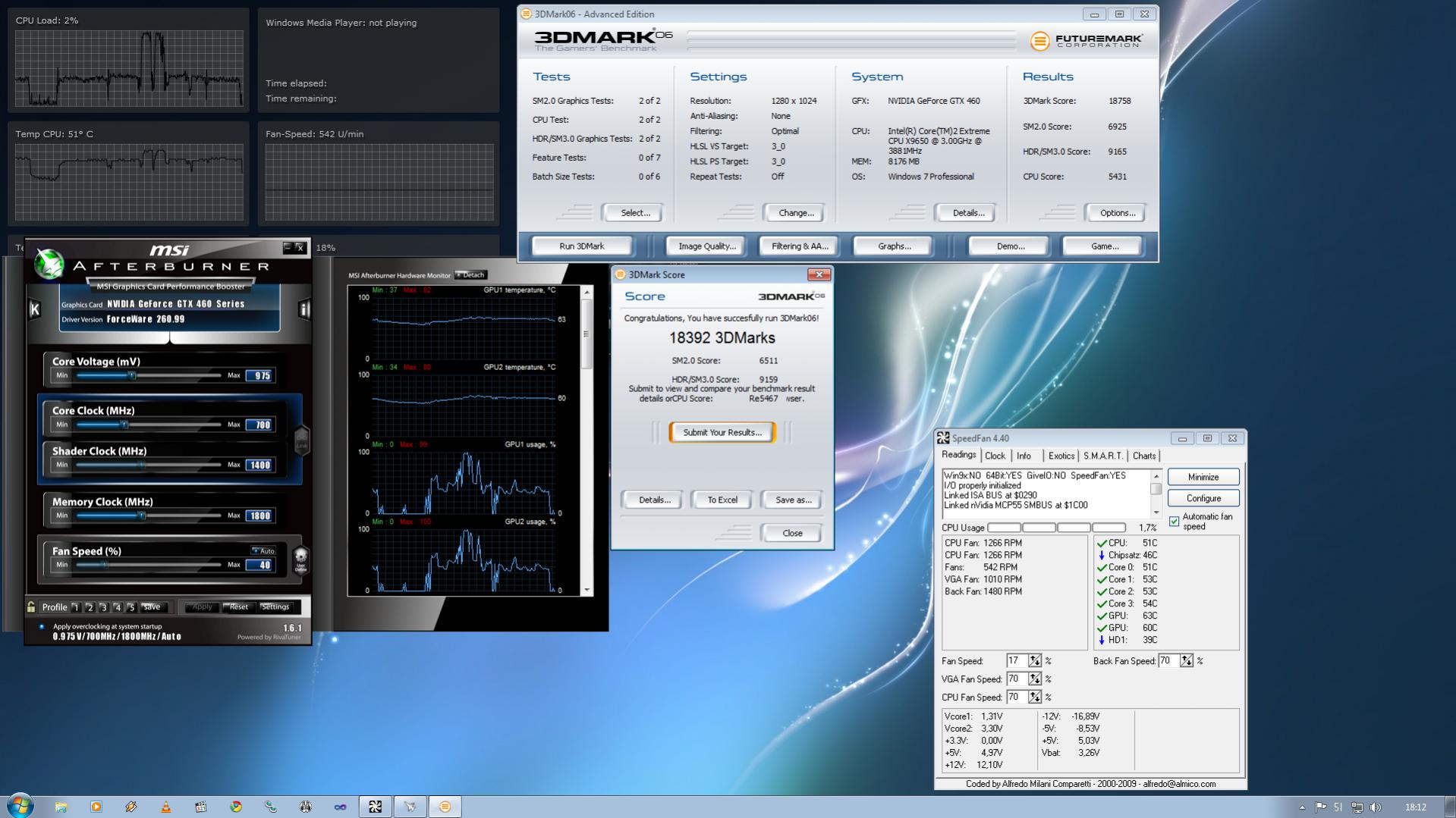 jeweils 3dmark vantage, 3dmark06 und furmark 1.8.2.