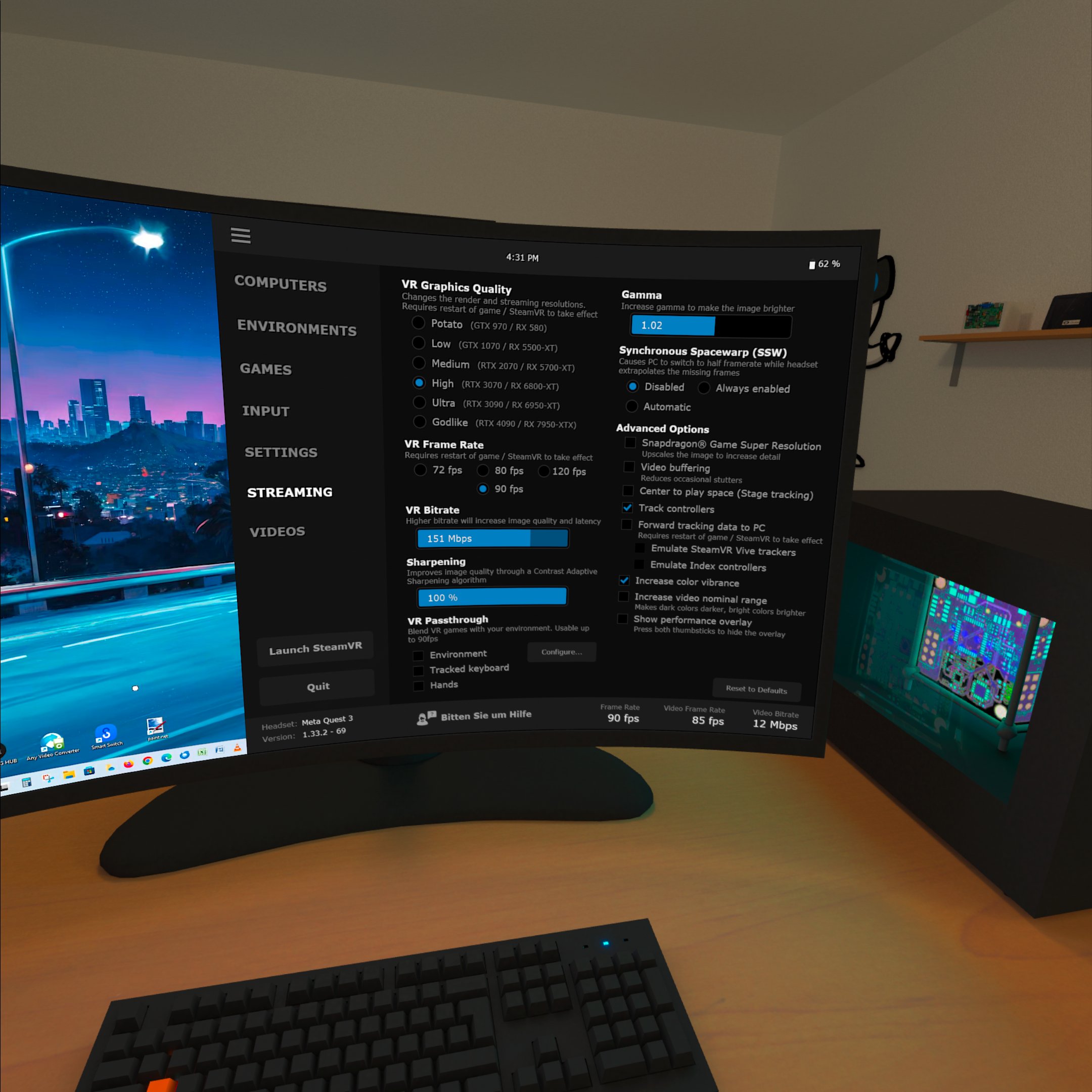 Ich stehe gerade vor einem Problem mit meiner neuen Quest 3 und Virtual Desktop.