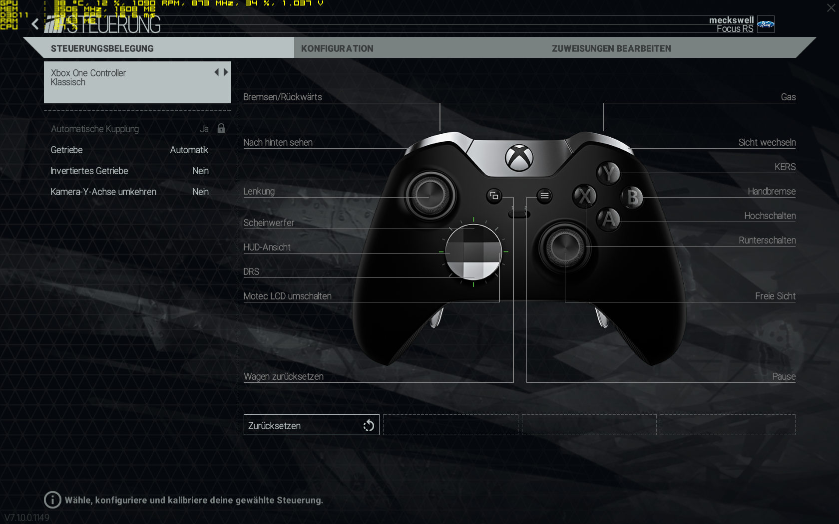 Ich daddle das Game ebenfalls mit einem XBOne-Pad & kann die Steuerung von meckswell nur empfehlen. Den Force Feedback/Rütteleffekt kann man je nach Gusto noch erhöhen & dann scheppert es in der Hand auch einen Tacken mehr.^^