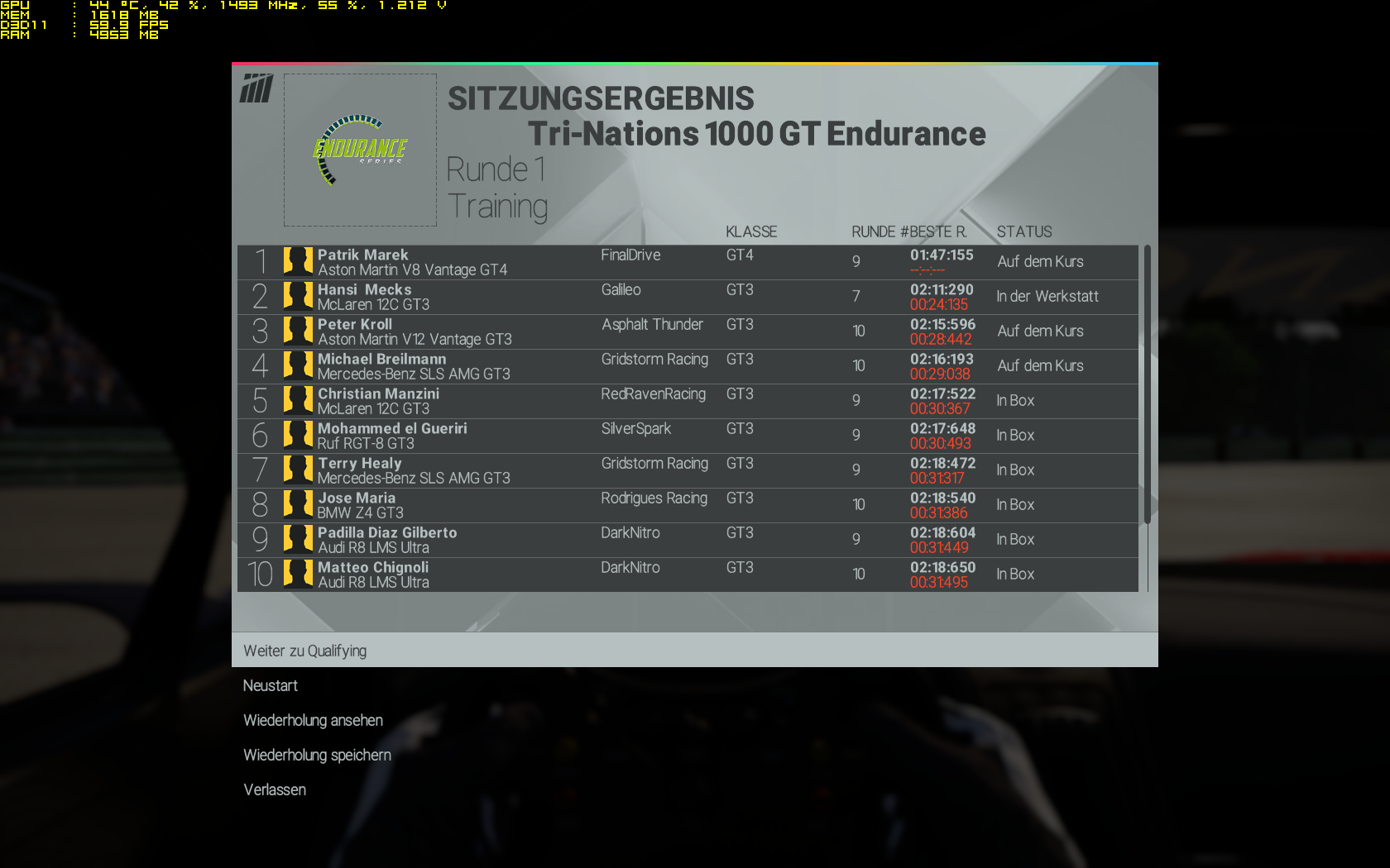 Hatte gestern ein schönes Public Rennen auf Donington, aber wieder GT3. Das nächste Rennen war dann Brands Hatch mit 10 Minuten Quali. Hab mich in der Quali auf die Pole vorgearbeitet. Erste Kurve im Rennen: Fährt mir ein bekloppter voll rein. Für uns beide Rennen zuende da Schaden an war... :/ Solche Pfosten. Echt zum kotzen bei den Public Rennen.