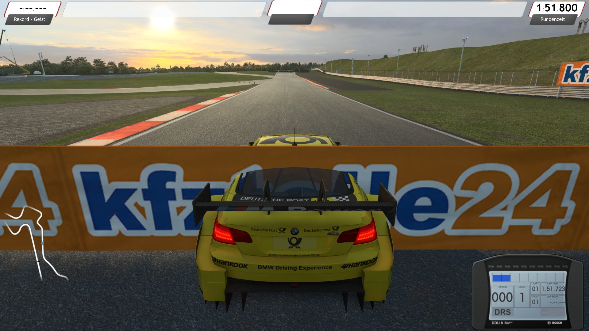 Im Rennen Start drücken und unter Sitzungseinstellungen umstellen... Ansonsten Optionen/Fahrzeugeinstellungen...