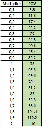 Ist bei mir in AC auch so. Hab ca. 70-80 cm Abstand bei 24" resultiert in einem FOV bei 27° oder so.