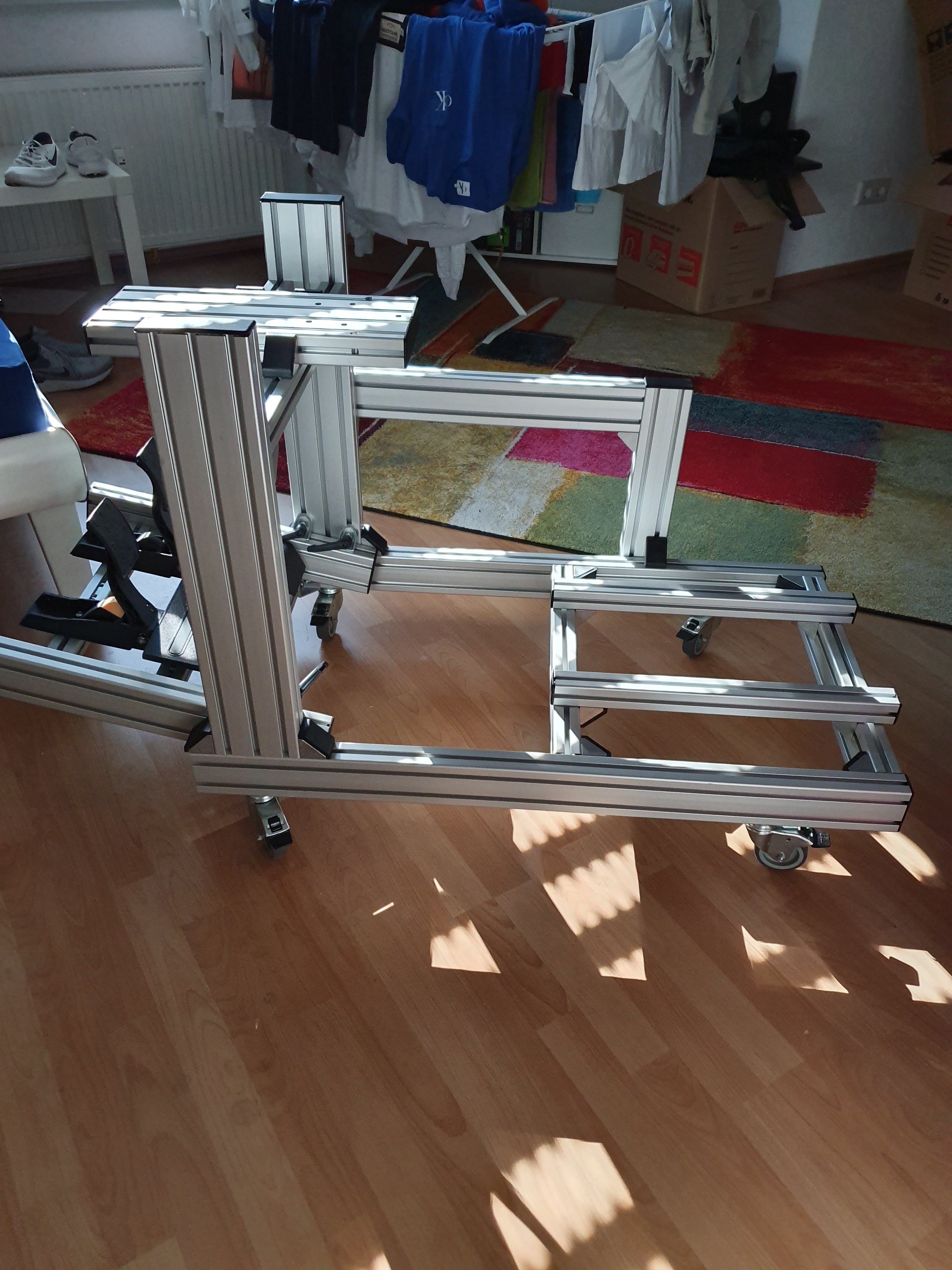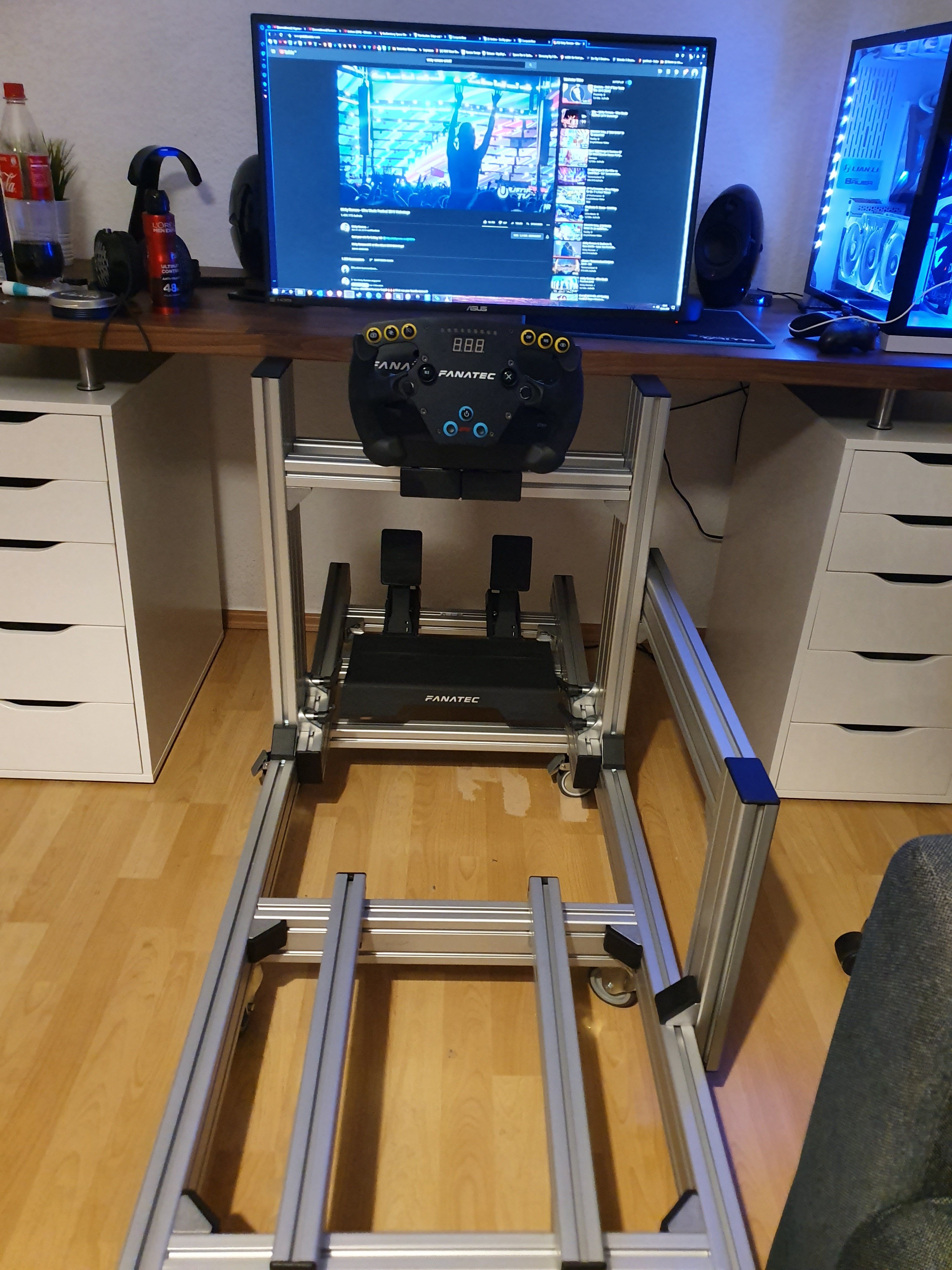 Die NOS Bilder (NOS = Nordschleife) sind von Amazon, auf eine Sperrholzplatte mit Doppelklebeband und in die Nut von den Profilen geschoben. Hatte idealerweise genau die Breite für 2 60er Poster.