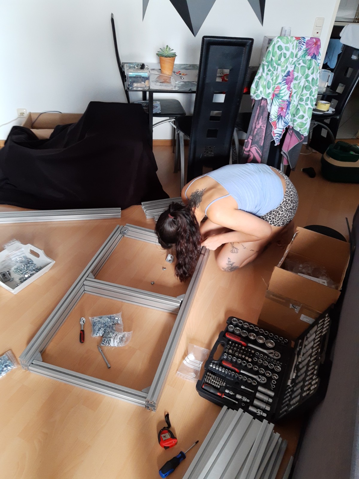 Allerdings habe ich die Profile, die Senkrecht hoch gehen mit dicken Winkeln ausgestattet, die ich mir direkt mitbestellt habe. Ob es nötig ist weiß ich nicht, aber ich kann sagen: es ist bomben fest.