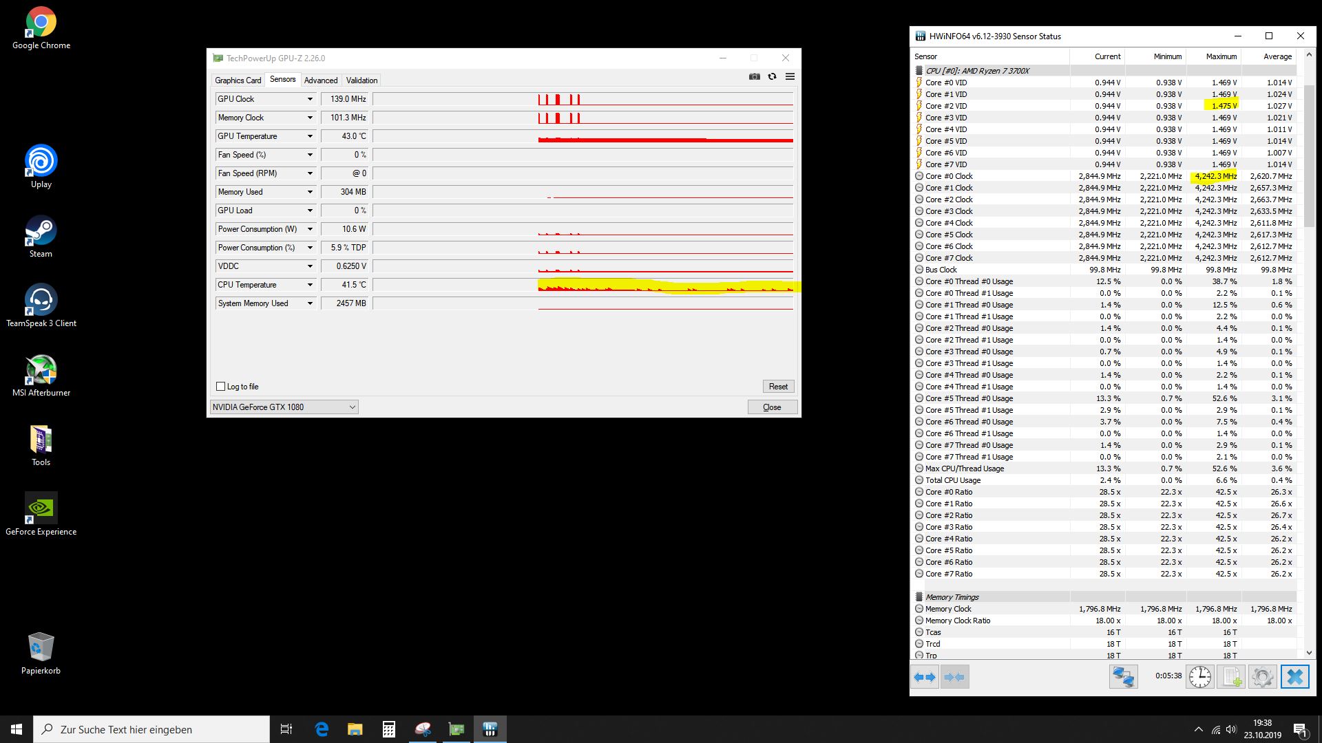 Mit dieser steht der Takt immer bei 4200 MHz. Rein von den FPS bewegt man sich z.B. bei The Division2 und dem dort vorhandenem Benchmark in 1920x1080 mit minimalen Details bei 194 FPS ohne Übertaktung (Durchschnitt von 3 Durchläufen) und 199 FPS mit Übertaktung.