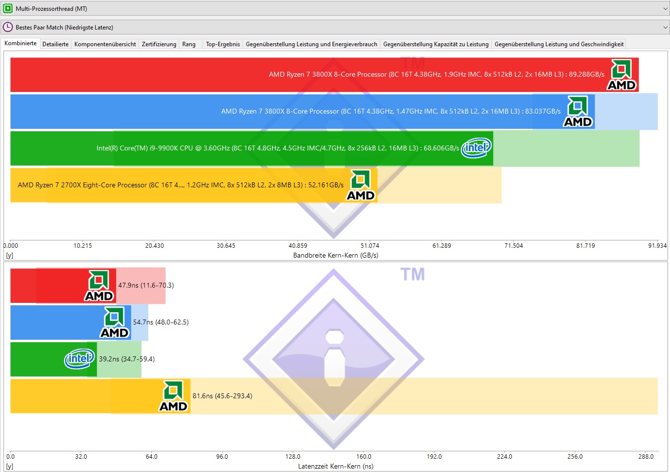 Dies resultiert in DDR4-3600 CL14-15-15-30-48-288 1T und ist eine ganze Ecke schneller als DDR4-3200 CL14-14-14-34-48-560 1T, sprich es hat höhere Lese-, Schreib- und Kopierdurchsätze und zudem eine bessere Latenz.