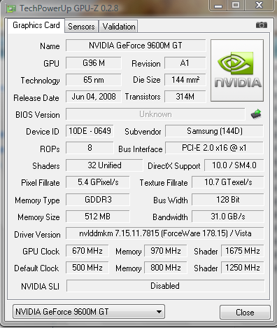 Taktung: GPU @ 670 - Memory @ 970 - Shader @ 1650