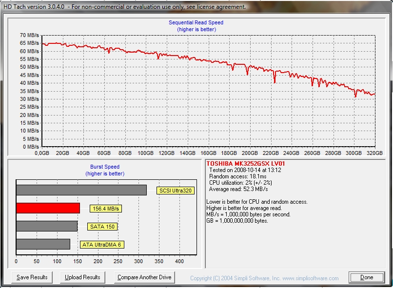 Zusätzlich im Anhang noch meine HD Benchmarkwerte von HD Tach von meiner Toshiba Festplatte (leider keine Hitachi).