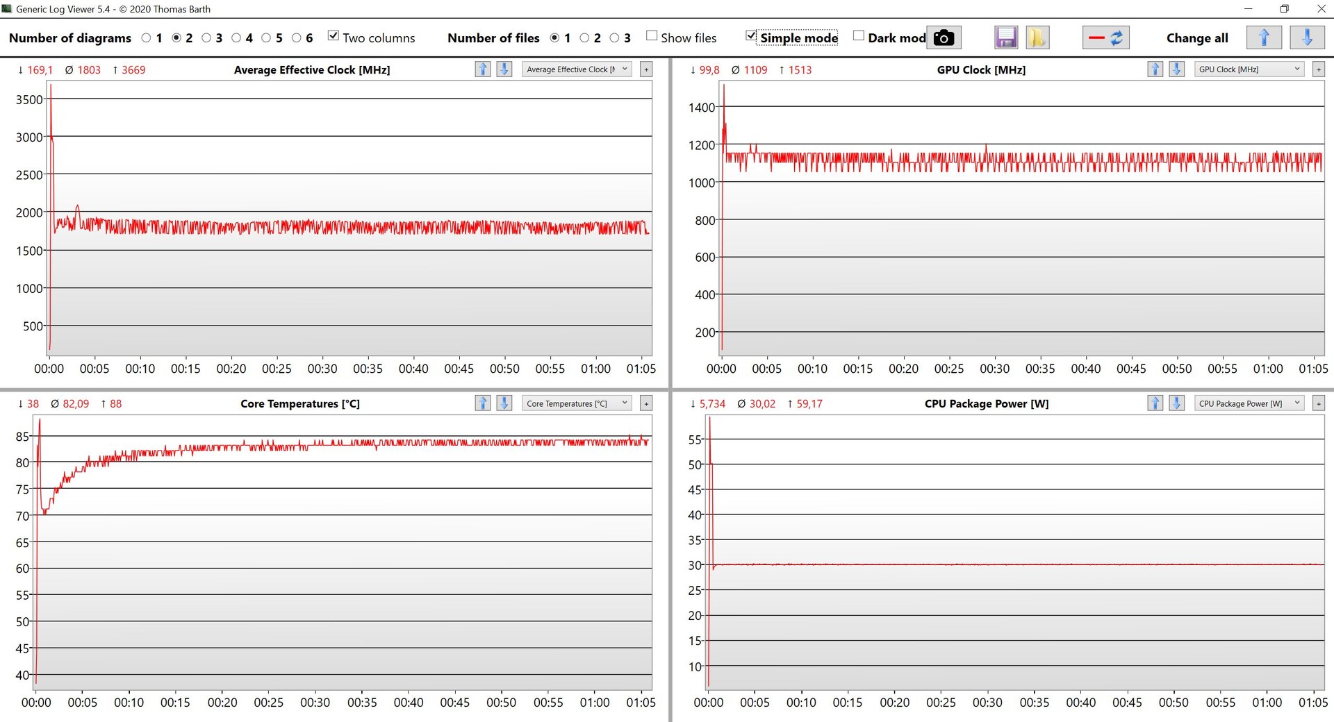 | Profile | CPU PL1 | CPU PL2 | CB R20 Multi | PCMark 10 Extended Score |