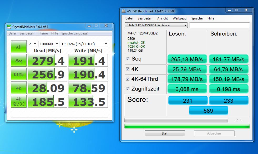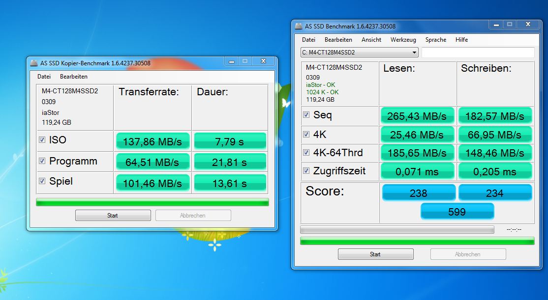 Bei 4k läuft ja nichts parallel, da spielt die etwas längere Zeit der Übertragung der SATA Kommandos weniger eine Rolle als wenn da ständig zu jeweils 4k Daten noch Kommandos übertragen werden. Das sieht man auch an der Zugriffszeit, da wird ja auch die Zeit mit gemessen, die zum Übertragen der Kommandos nötig ist. Obendrein spielen das Caching, as wird beim iaStor weit weniger intensiv genutzt als beim msahci, natürlich auch noch eine Rolle und die Geschwindigkeit der Taskswitsches. Man darf nicht vergessen: 64 ist eine sehr hohe Anzahl an ausstehenden SATA Kommandos, doppelt so viele wie der Standart vorsieht.