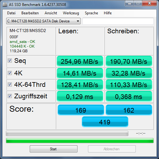 Seq. Schreiben hat sich deutlich verbessert, nur 4k-64Thrd ist noch ungewöhnlich hoch. Nach der Installation hab ich diese Punkte durchgeführt.