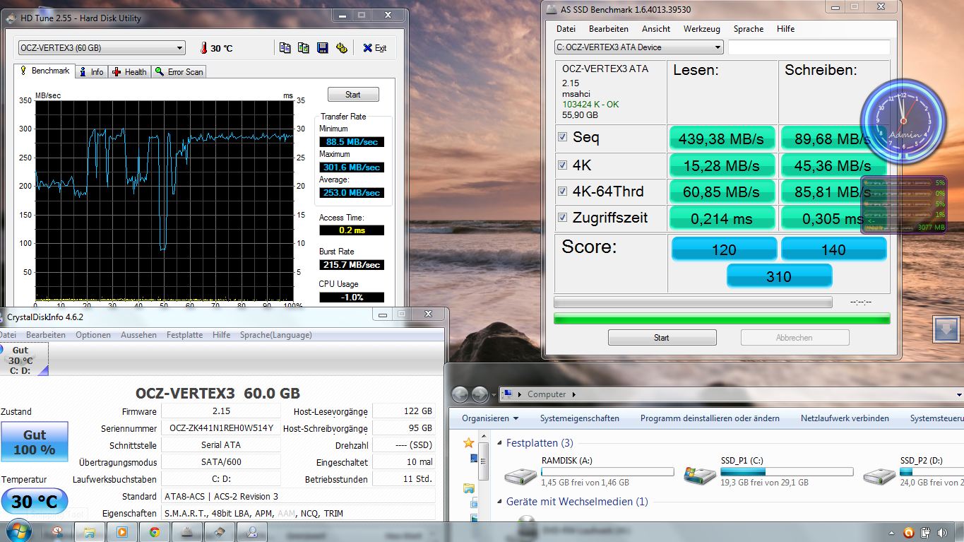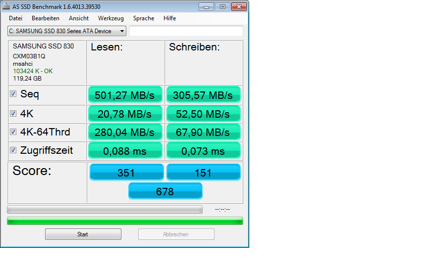 Voltago schrieb:Edit²: Neu drübergebügelt mit AHCI, damit dürften die Werte dann wohl optimal sein und die SSD auch maximal strapaziert
