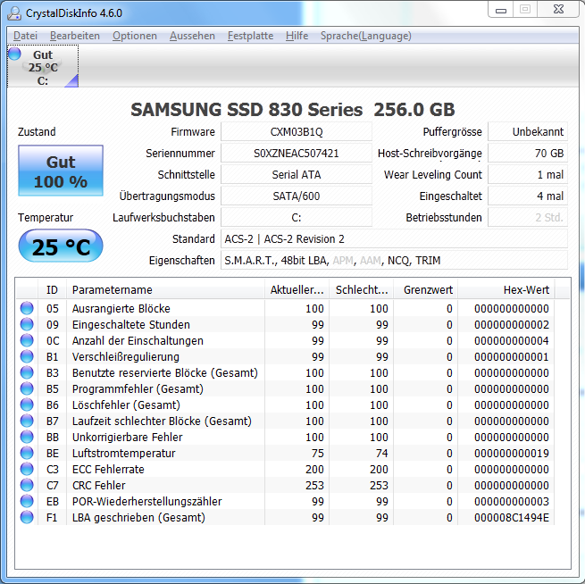 Benchmarks mache ich ja nicht mit der SSD, war jetzt nur zur Überprüfung