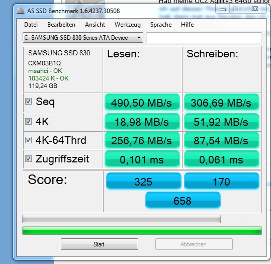 Holt schrieb:carfentanil, irgendwas ist mit dem Anhang schief gegangen. Generell ist es erstmal so, dass man den Rechner (re)booten und dann einmal benchen sollte, da sont der Effekt des Systemcaches die Werte noch mehr verfälschen kann, als es zum Teil sowieso geschieht und vor allem die 4k_64 Werte sehr beeinflusst.