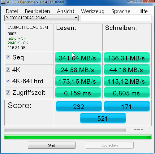 Hier mal meine Werte, Samsung SSD 830 256GB an SATA III 6 GBit/s