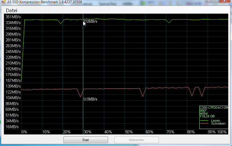 Nene, ich meinte schon das endgültige Ergebnis. Wenn ich den Test 6 Mal durchführe (3 Boots), hatte ich einmal 165 MB/s und einmal 200 MB/s, der Rest lag bei 260 MB/s und höher.