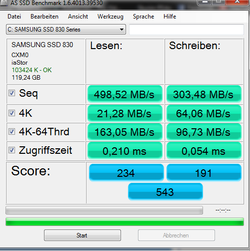 Hier hat jemand im pcgameshardware Forum die Samsung 830 so eingestellt, und dadurch nochmals bessere Werte.