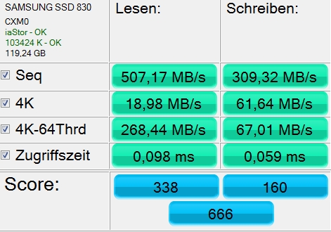 Notebook und Energiesparmassnahmen, die gehen vor allem auf die 4k Werte. Ansonsten ist es halt nur SATA II und auch schon ein älteres Notebook.Domi16 schrieb:Irgendwelche Erklärungen?