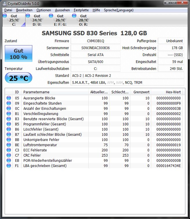 Die geben gewöhnlich spontan und ohne Vorankündigung auf, da siehst man auch vorher nichts an den Werten._Huma_ schrieb:Ich spiele mit dem Gedanken meine knapp 1,5 Jahre alte Vertex 2 zu tauschen (Samsung 830 oder M4 128GB), weil ich die Vermutung habe, dass mir die Vertex langsam den Geist aufgibt.