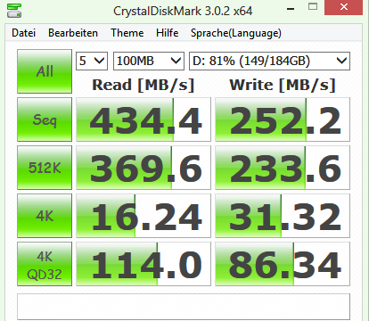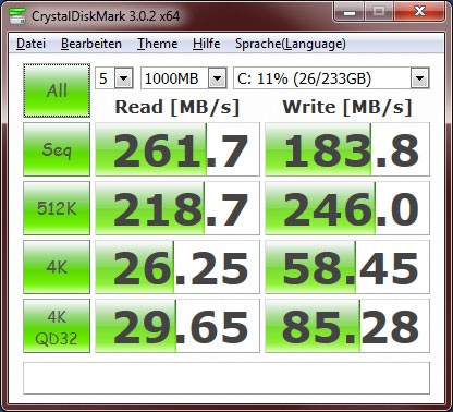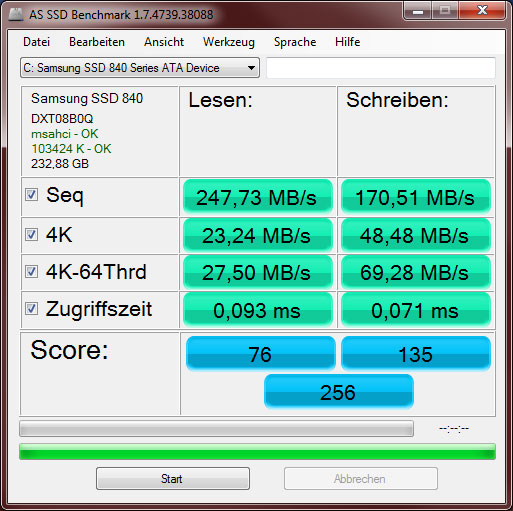 Der PC ist kein Highend Hardcore-Gamer PC, aber auch keine Schnecke denk ich. Während des Benchmarks geht die CPU-Auslastung zwischen 3% und maximal 15%. Nach meinem Verständnis läuft die Samsung SSD auf SATA II. Bin am überlegen, ob ein zusätzlicher SATA III Controller (für den PCI Slot) hier Sinn macht, auch wenn die Nicht-Onboard Controller nicht die volle Leistung bringen.