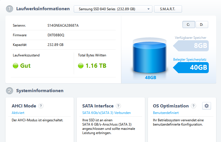 Im Anhang ist noch der Screenshot zur SSD.