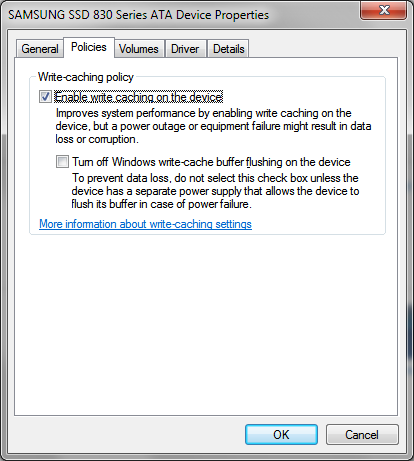 "[_] Turn off Windows write-cache buffer flushing on the device,..."
