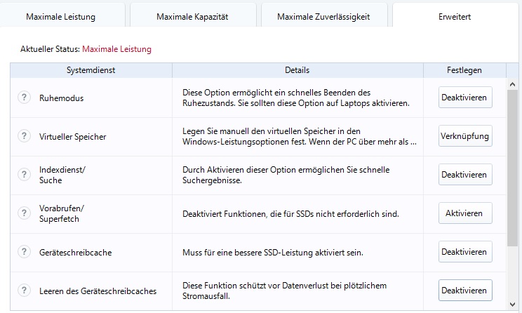 Meiner Meinung nach gehört bei dieser OS Optimierung bei Windows 7 und 8 nicht mehr angeboten, denn diese Windows Versionen machen das schon selbst richtig, wenn sie auch eine SSD installiert werden.