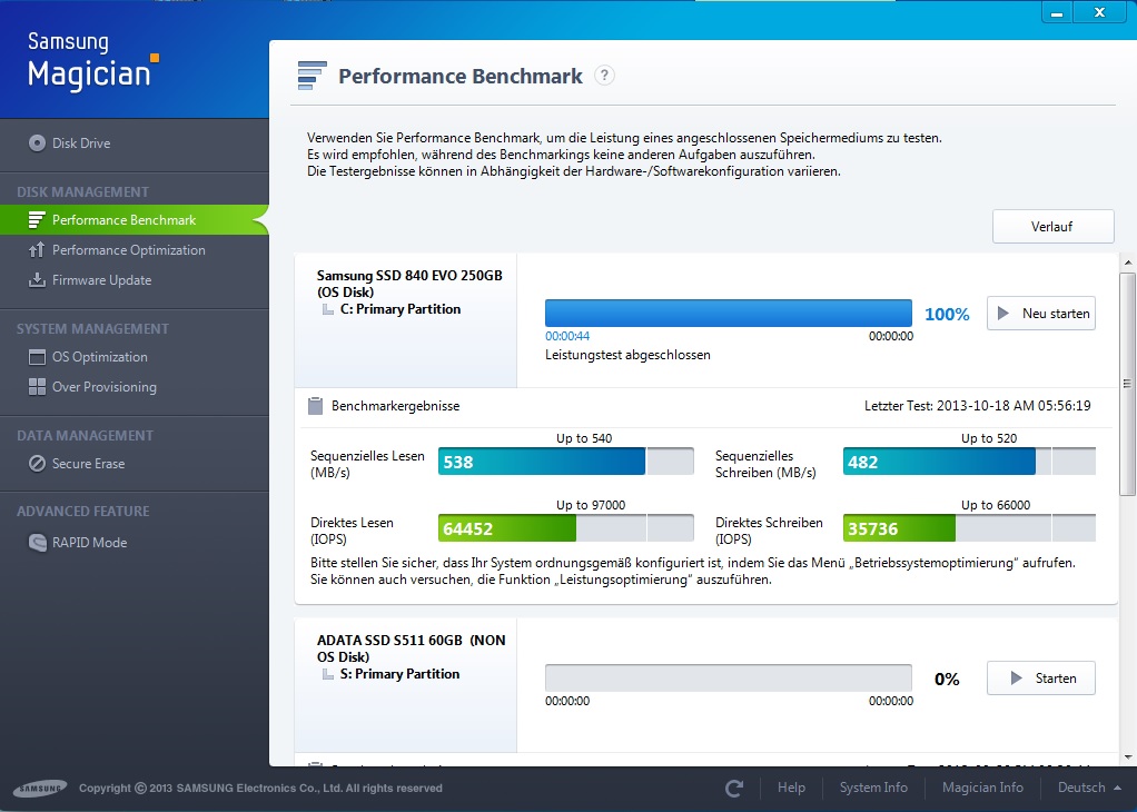 Mit Rapid kann man die SSD nicht korrekt benchen, da ein Teil der Messungen im Ram abläuft.