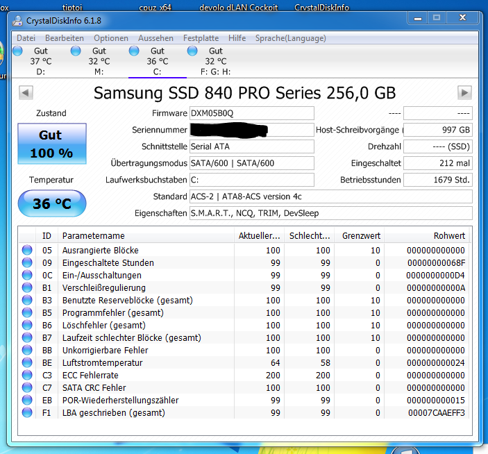 Sind nebenher noch andere Programme/ Anwendungen geöffnet gewesen, die während des Benchmark auf die SSD zugegriffen haben oder konnten?
