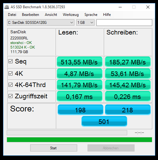 Darf sich jeder sein eigenes Urteil bilden. Und ich empfehle NATÜRLICH NICHT auf einem Systemlaufwerk den Klicker zu setzen, nur damit AS-Bench gut durchläuft.