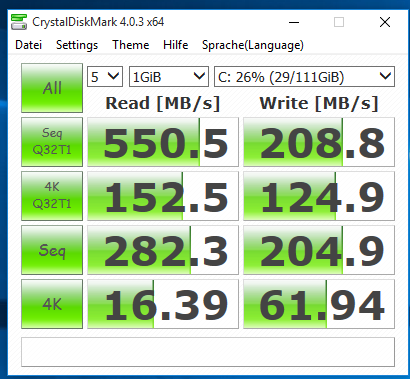 SSD eingebaut, installiert und leer wie das Teil ist einen Speedtest durchgeführt und da habe ich gestaunt... ich komme lediglich auf eine Schreibgeschwindigkeit von um die 135 MB/s