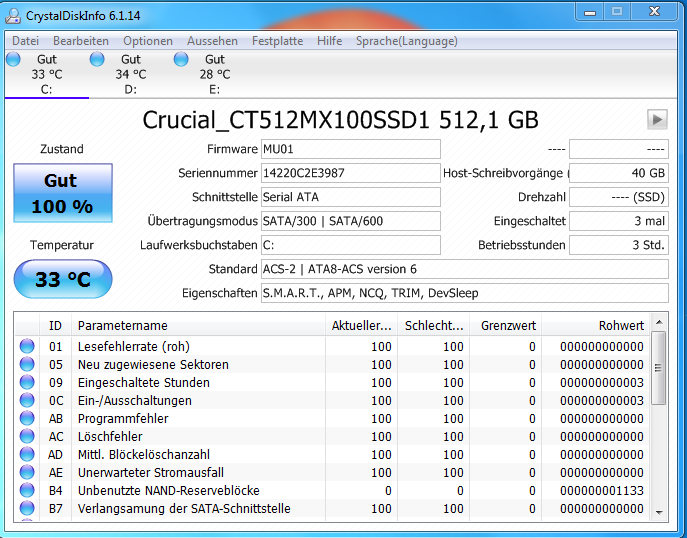 Was hat das zu bedeuten? Betriebssystem ist WIN 7 Home Premium 64 bit, AHCI und Trimm laufen. Ansonsten kann ich nichts Negatives beim Betrieb feststellen.
